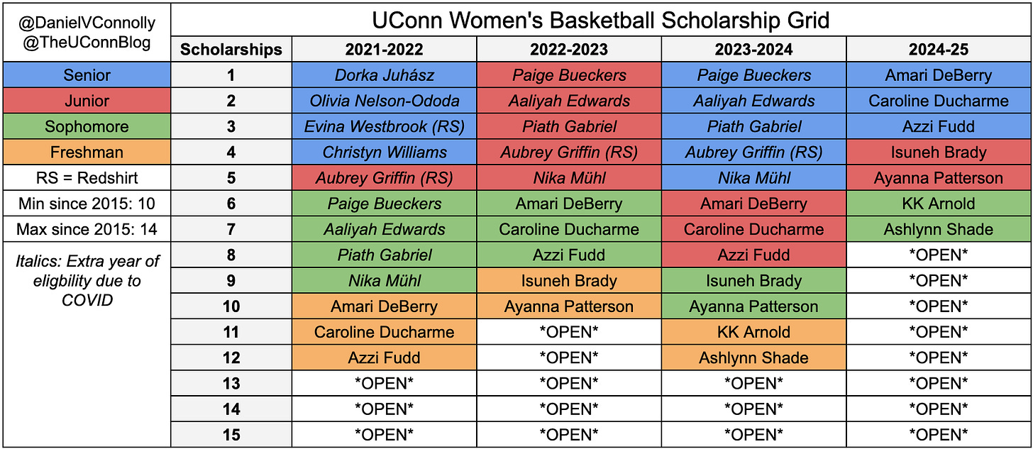 UConn could definitely use some backcourt reinforcements next year with only four guards — even if those four players are Bueckers, Caroline Ducharme, Azzi Fudd and Mühl. After all, we’ve seen firsthand how quickly injuries can deplete depth.